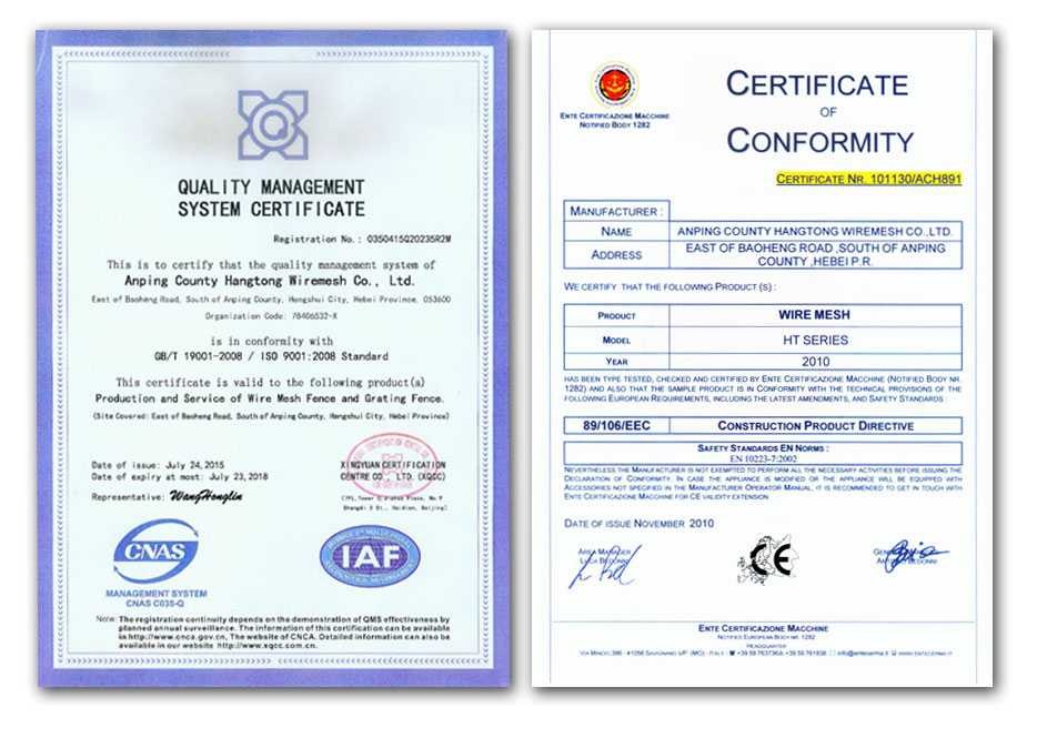 Hangtong Wire Mesh is engaged in this industry since 1996.We are developing at the top speed.Now,We have advanced quality manage system,ISO9001:2008 and CE certification management can let our client satisfied with the top quality of products.