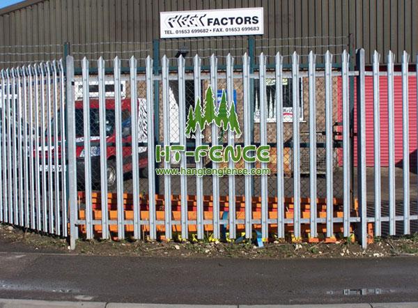 W Pale Palisade Fence is welded with isolation grid and fixed by connecting attachments and steel pipe struts.